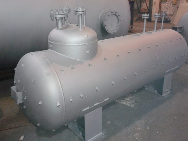 Конструкция сосуда включает корпус с нужным количеством технологических точек доступа (с люками), герметично закрытый днищем, и штуцеры для комплектации контрольно-измерительным оборудованием. Для надежной установки система оснащается металлическими опорами.